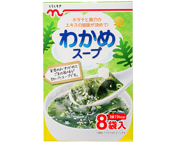 ホタテと魚介のエキスの旨みが決めて!\n食感のよいわかめとごまの風味が効いたスープです