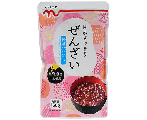 北海道産小豆を使用した、糖質40%オフ※のぜんざいです。湯せんや電子レンジで温めてお召し上がりいただけます。(※くらしモア「風味豊かなぜんざい」に対して)