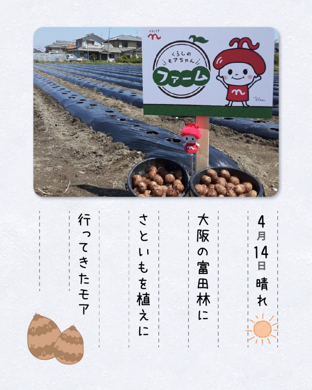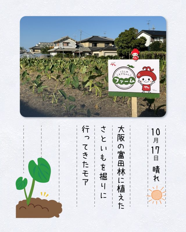 今から待ち遠しいよね。里芋の販売についてだけど、今後の展望としては、全国の加盟社でも『くらしのモアちゃんファームの里芋』を販売できるように規模を拡大していきたいと思っているよ!里芋の他にもいろんな野菜に挑戦できたらいいな。