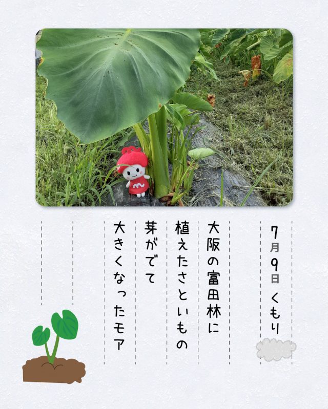 里芋といえば、山形の芋煮が有名モア!里芋は煮物として食べるイメージが強いけど、栽培するための面積がどんどん少なくなっているなんて、まったく知らなかったモア・・・。松井さんが今の里芋の状況をなんとかできないかな?と思いながらファームをスタートさせたなんてとってもすごいモア✨そんなすごいファームにモアちゃんの名前をつけてくれてうれしいモア😊